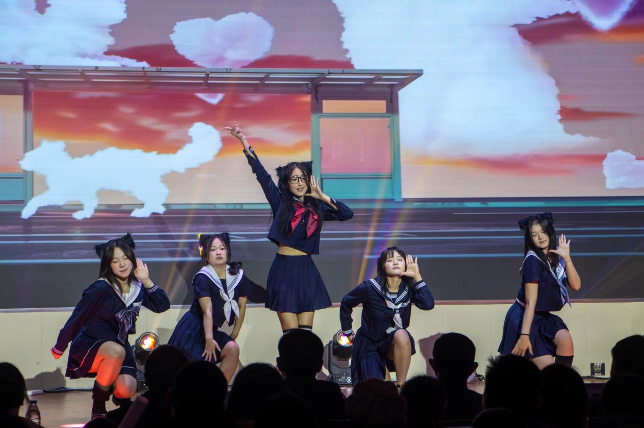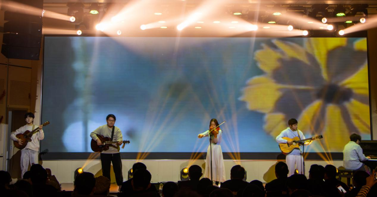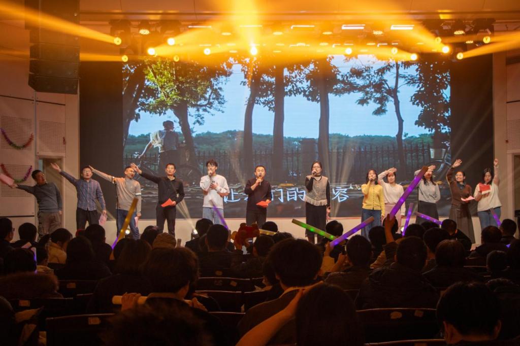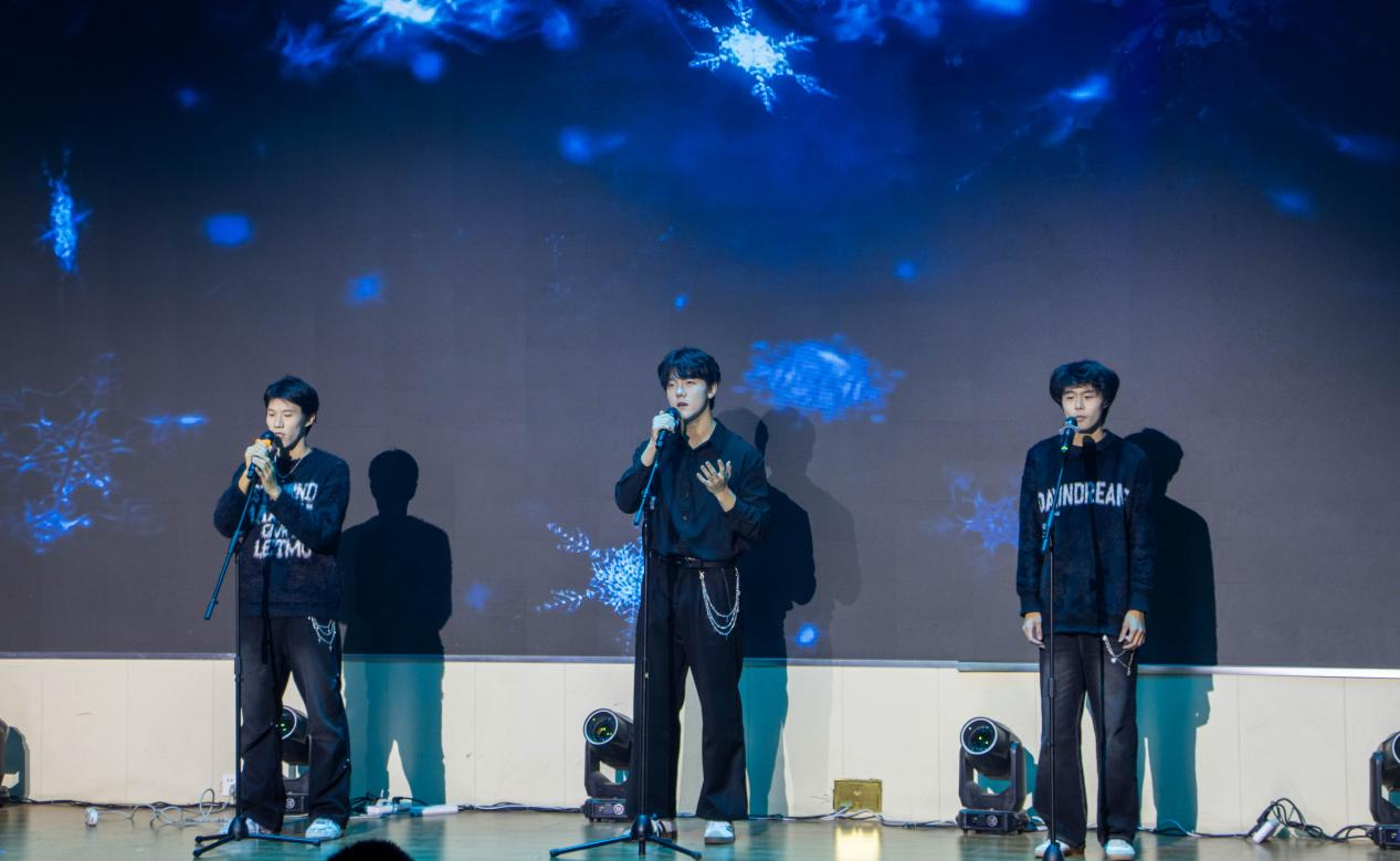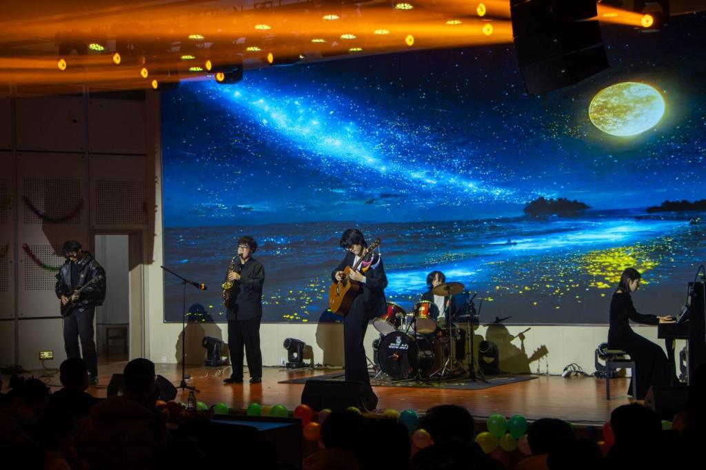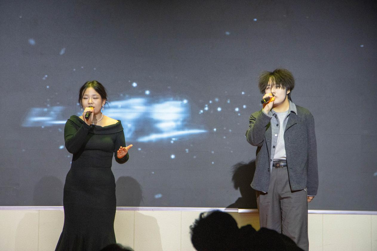 晚会期间还穿插了互动游戏和抽奖环节,欢呼声、掌声此起彼伏,现场洋溢着欢乐祥和的节日气氛。最后晚会在全体演职人员合唱的《日不落》中圆满落幕,温馨的旋律萦绕礼堂,师生们挥舞着荧光棒,共同定格这一美好瞬间。